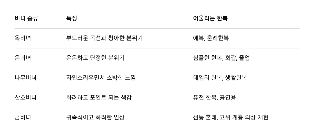 전통과 현대의 조화를 이룬 비녀 스타일링은 한복의 매력을 극대화하는 최고의 포인트다. 자신에게 어울리는 비녀를 찾아 한복과 함께 착용해보면, 단순한 복장이 아닌 하나의 문화로서의 아름다움을 경험할 수 있다.